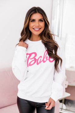 Wholesale ๐ Pink Lily Mini Script Mauve Animal Print White Kids Graphic Sweatshirt โ