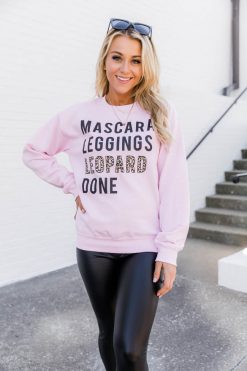 Best Sale ๐ Pink Lily Mascara Leggings Leopard Done Light Pink Graphic Sweatshirt โ