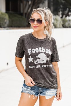 Best Sale ๐ Pink Lily Football Can’t Stop Won’t Stop Black Acid Wash Graphic Tee ๐