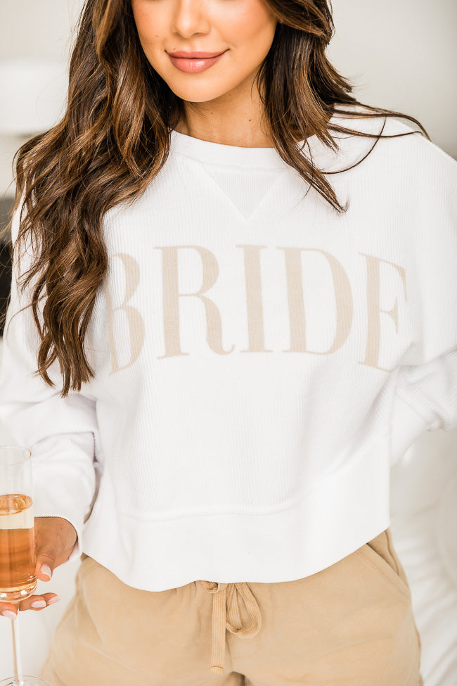 This cute bride varsity corded sweatshirt is perfect for the bride to be! Featuring a white solid fabric and lettered design. The material is soft – it’s so comfortable to wear on any casual day. Pair this cute sweatshirt with a pair of jean shorts and you’re ready for the weekend!