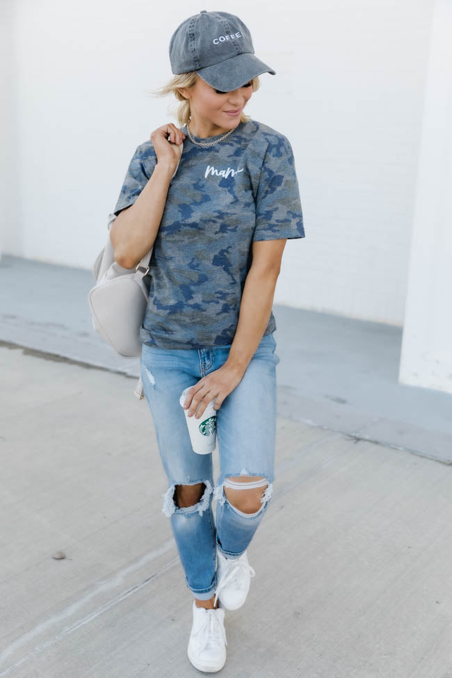 This lovely tee is perfect for all mom’s or any casual comfy days! Featuring a timeless camo print paired with the cutest lettering, this timeless tee is such a perfect choice for any day! The material is lightweight and soft – it’s so comfortable to wear! You can easily layer this look with a lightweight cardigan for breezy nights!