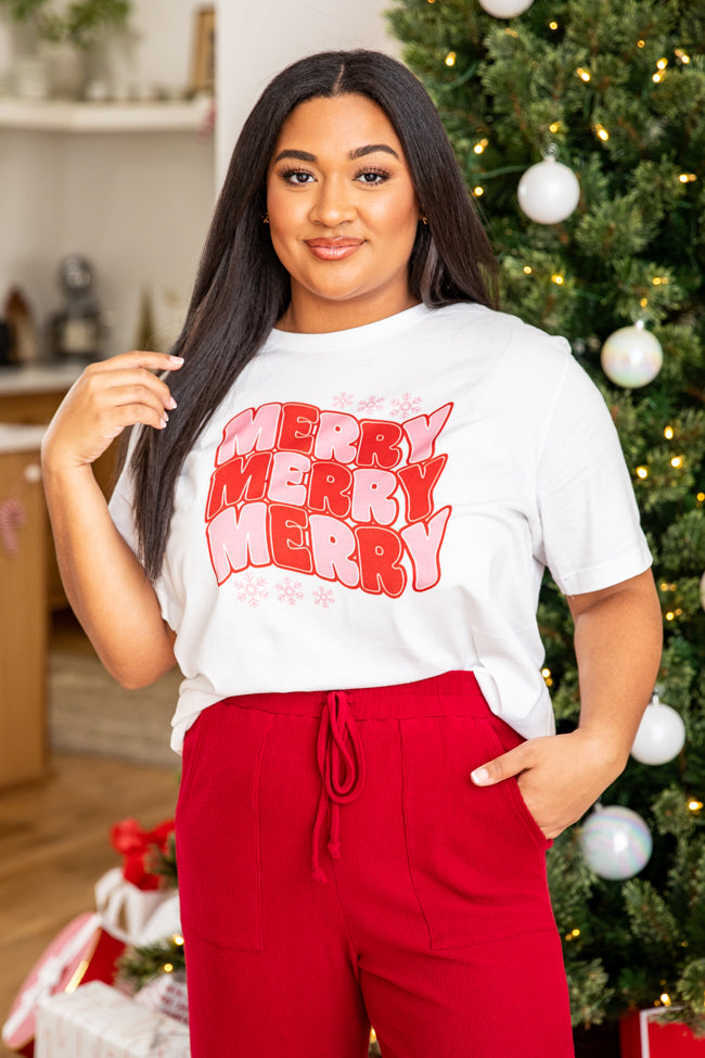 - Merry Repeat Pink and Red onΒ white graphic tee