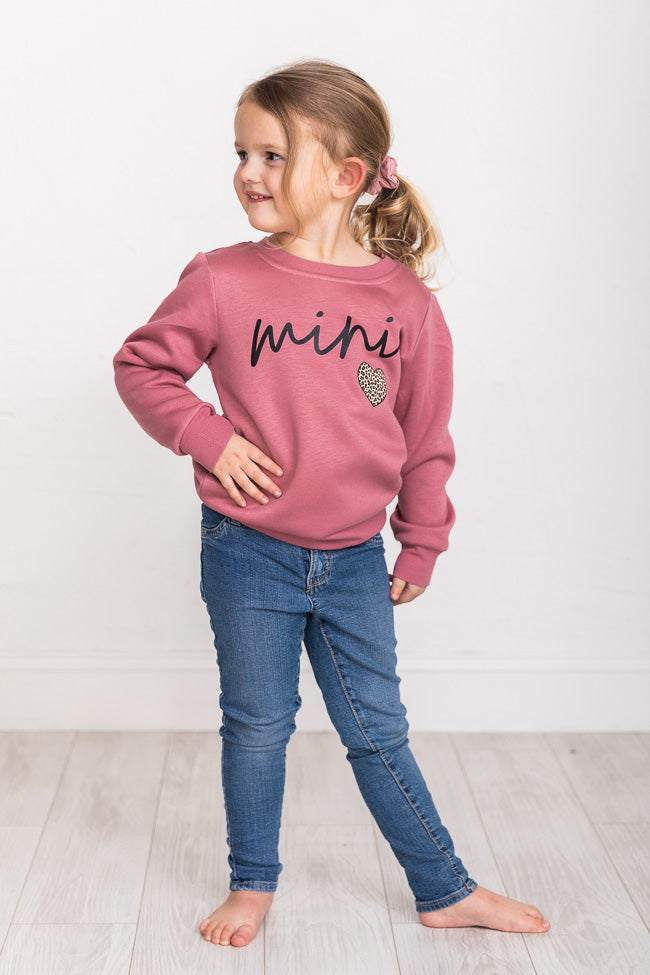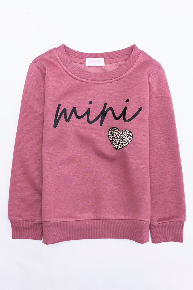 - Mini script brown animal printΒ kids graphic sweatshirt