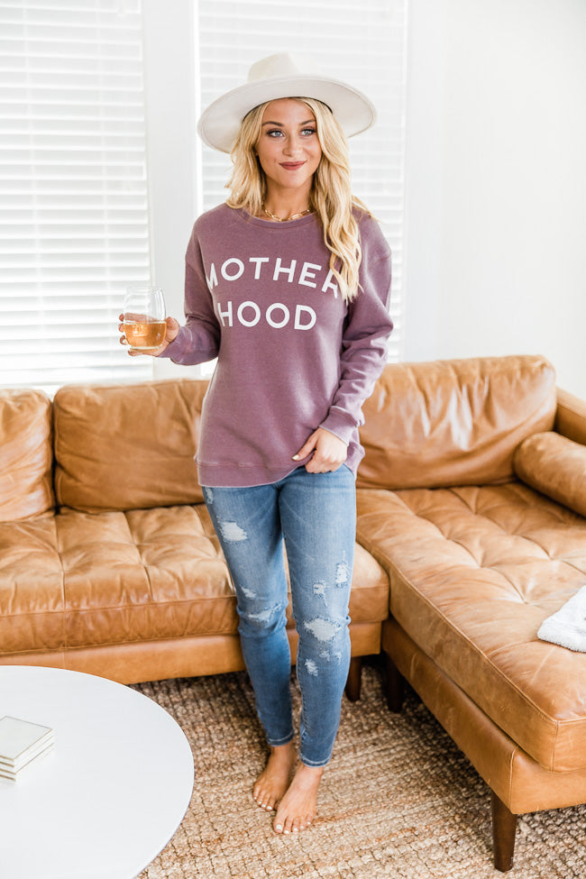 This sweet motherhood mauvesweatshirt is made for relaxing weekend days! The classic mauve color is so trendy plus we love the fun lettered design It’s so easy to layer this graphic sweatshirt with lounge pants and a warm mug of coffee! Or you can throw it on over a tee and jeans for the perfect Starbucks run look. No matter how you rock this sweatshirt, it’s sure to shine!
