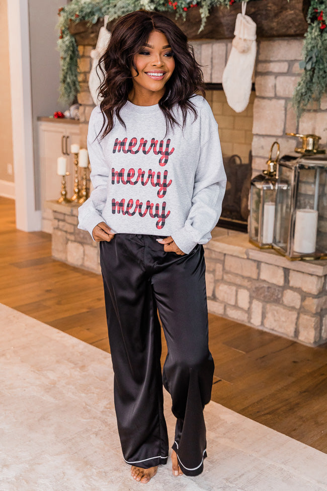 This darling graphic sweatshirt is such a perfect choice for getting into the holiday spirit! Featuring a beautiful ash grey color paired with adorable lettering, this classic sweatshirt is sure to make a statement in style! The material is lightweight and cozy – it’s so comfortable to wear on Christmas morning or any winter night! Just add a cute tee, jeans, and boots to complete this gorgeous look!