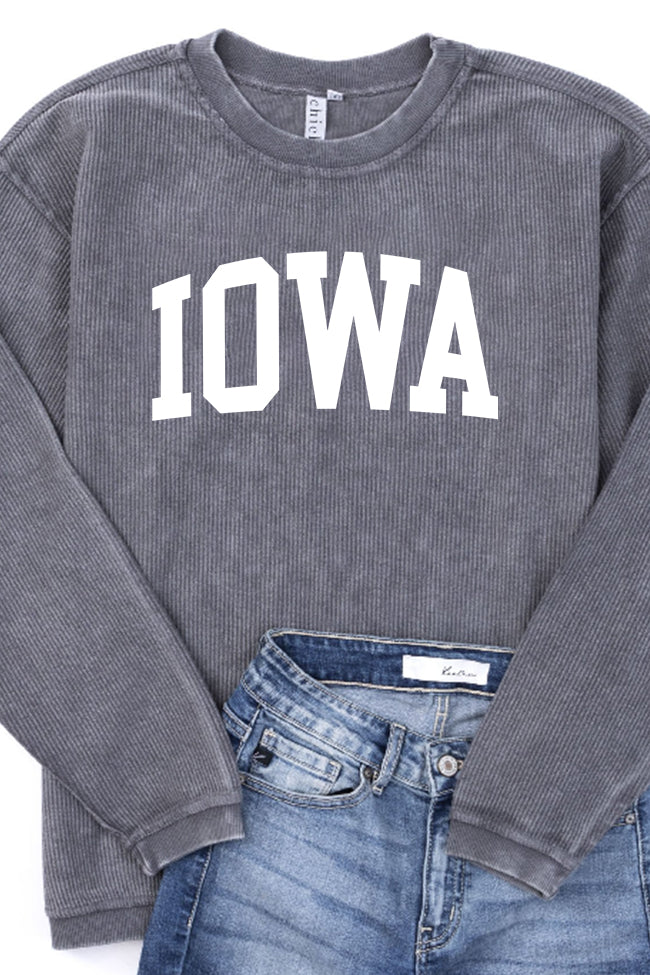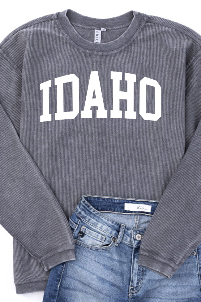 This state corded charcoal sweatshirt is perfect for chilly weekend days! Featuring a charcoal color with a cute design, this sweatshirt is a such a bold statement look! The material is lightweight and soft – it’s so comfortable to wear while watching movies on the couch or on a Starbucks run. Just add a cute tee, jeans, and boots to complete this gorgeous look for breezy days!