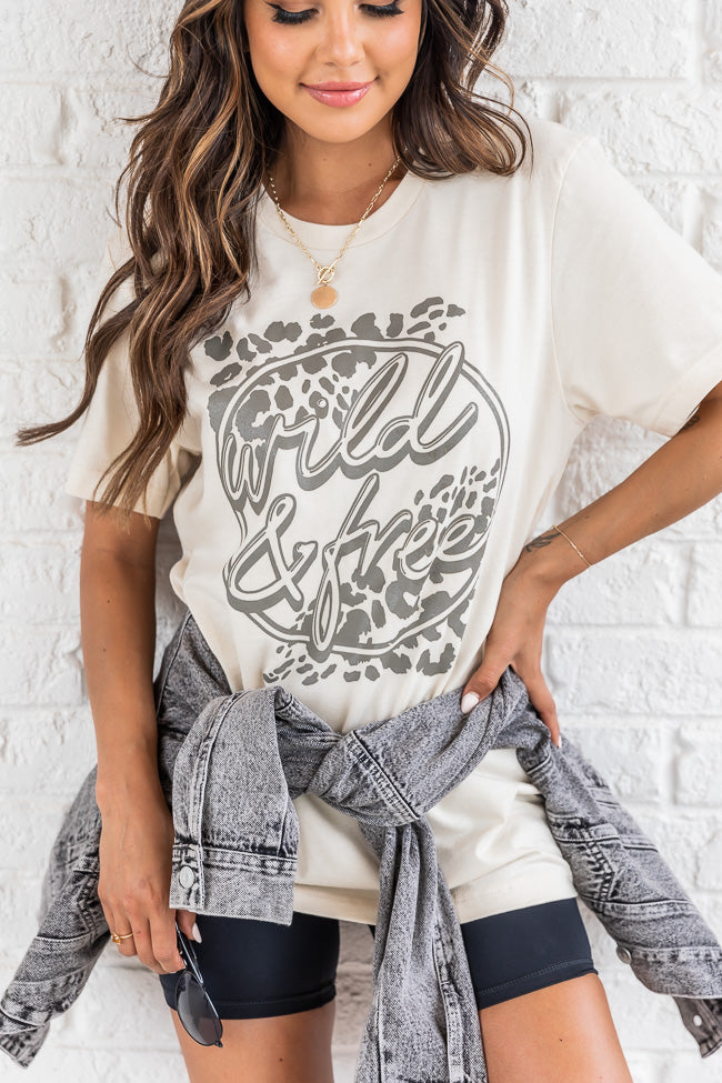 This adorablewild and free graphic tee is a must-have for summer days! This classic tee features a lightweightsoft cream color, it’sa perfect neutral.We are in love with the cute leopard print design – it’s so adorable! The material is lightweight and soft – it’s so comfortable to wear all summer long. Just add jean shorts and sandals to complete this cute look!