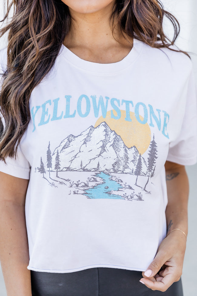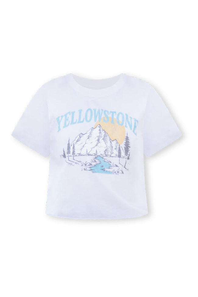 - Crew neck with short sleeves, cute Yellowstone design, and cropped length